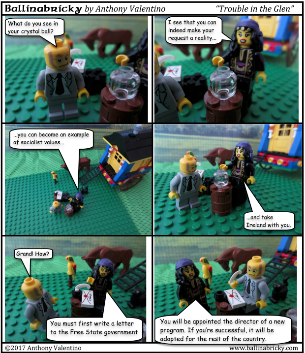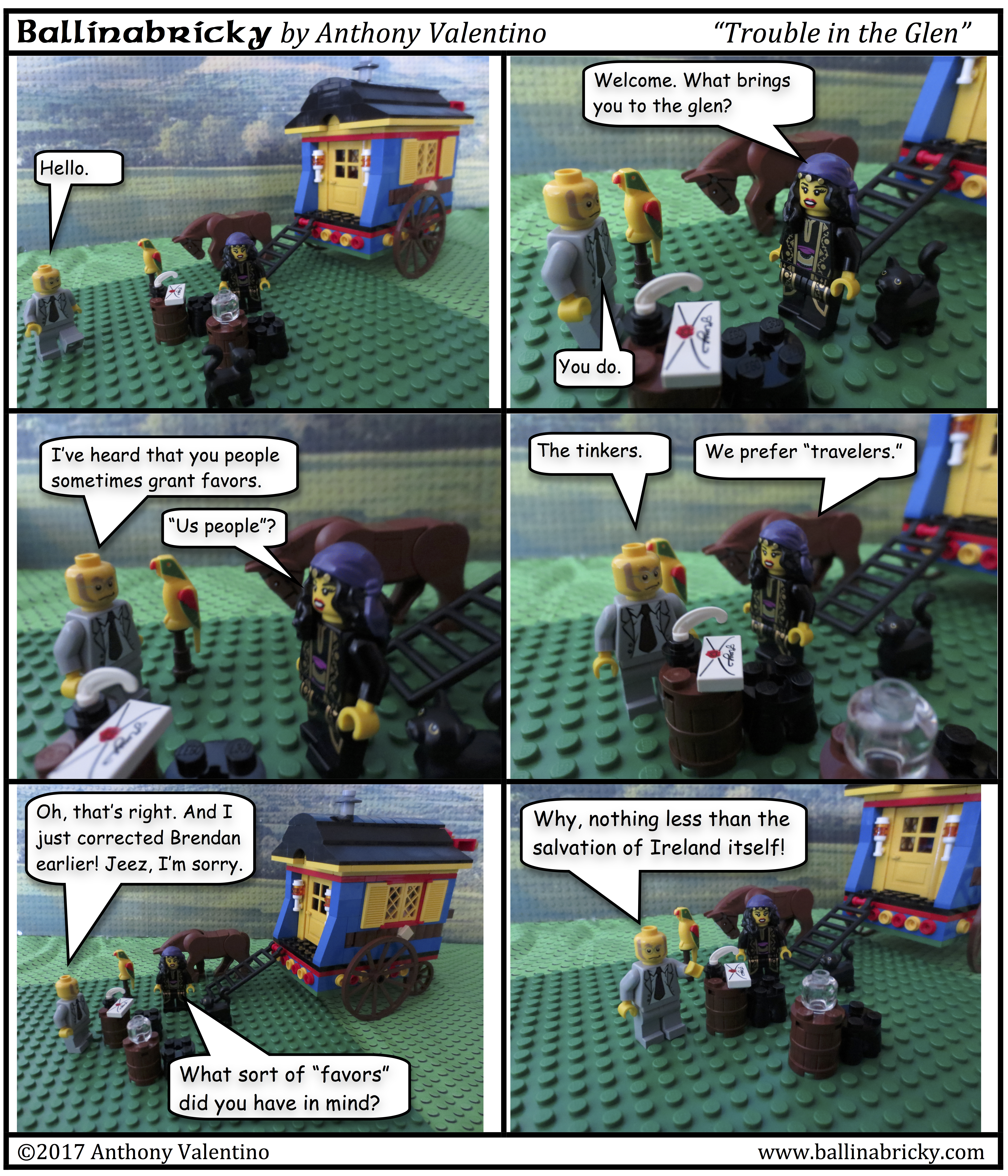 Trouble in the Glen 10/20/17 – 5/4/18 — A mysterious couple camps out in the glen, and the residents of Ballinabricky seek magical help for what ails them. Be careful what you wish for…