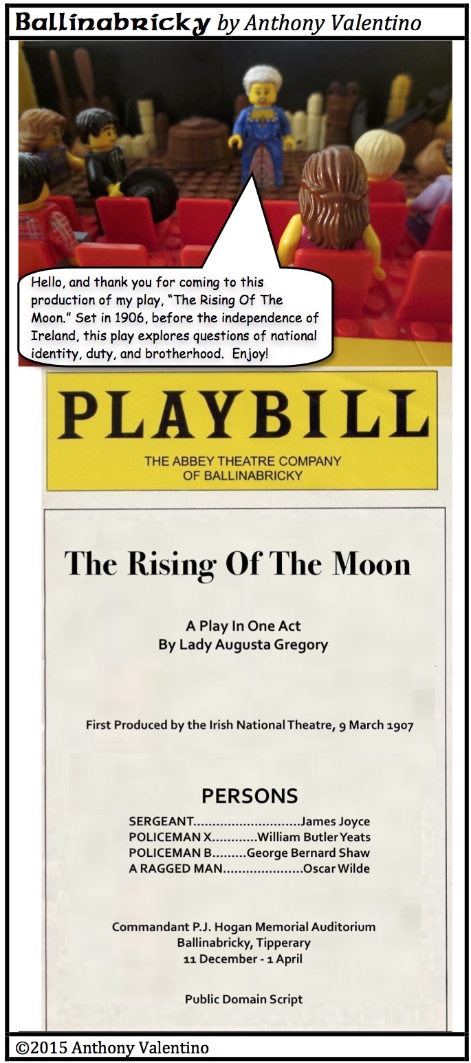 A comedic, political play by Lady Gregory taking in themes of duty, nationalism, music, and mistaken identity. Songs are an important part of this play. Recordings of them can be found here:
