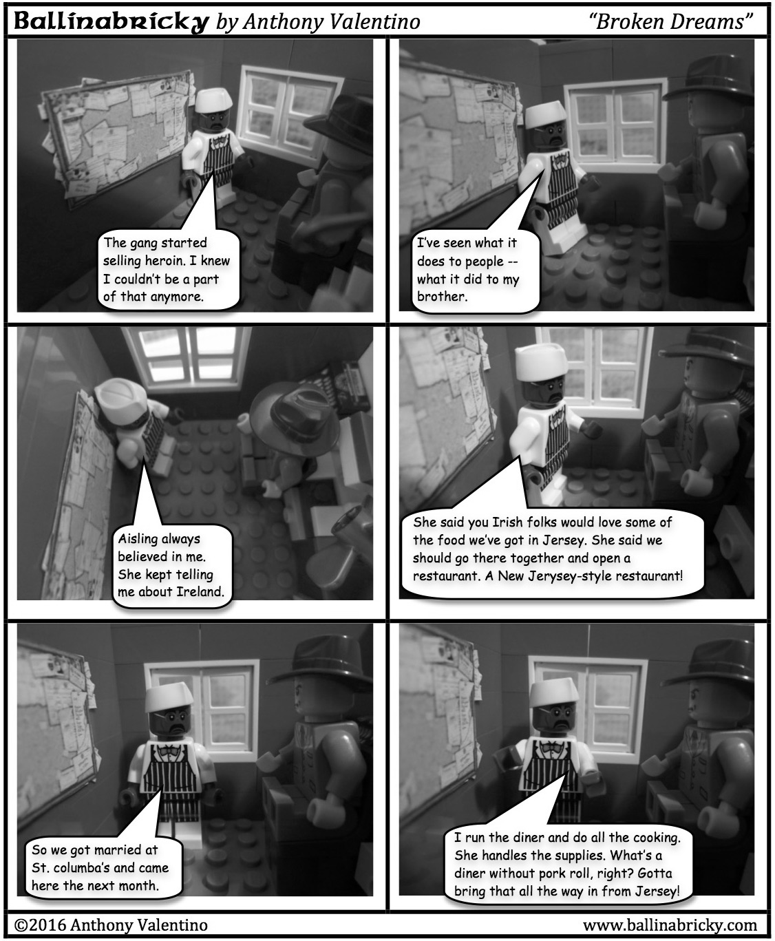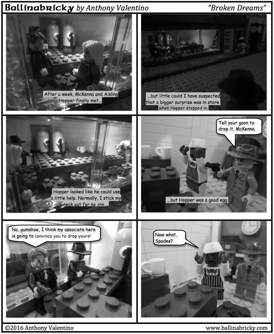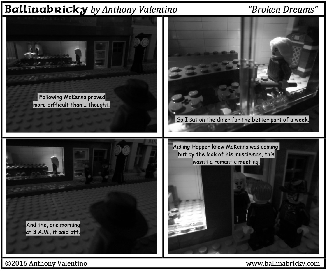“Broken Dreams” is the title of a poem by W.B. Yeats. It is also a play on “Boulevard of Broken Dreams,” a painting derivative of Edward Hopper’s “Nighthawks.”