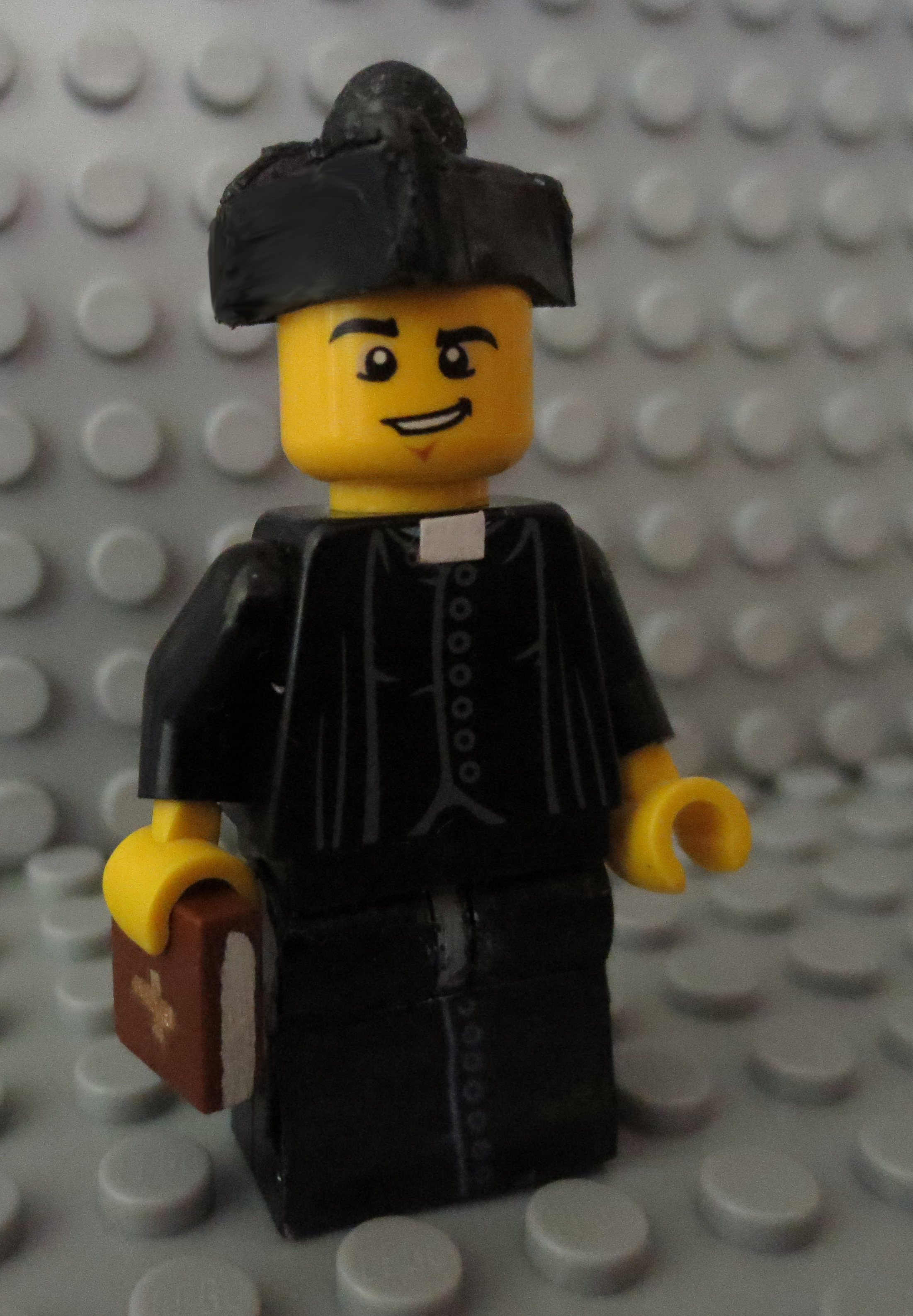 Msgr. Hugh O’Flaherty – pastor of St. Brigid’s Chapel (named after the real Hugh O’Flaherty [“the Scarlet Pimpernel of the Vatican”], and the character played by Gregory Peck in The Scarlet and the Black). For most stories until late 2017, he had a beard and wore a biretta and regular cassock. |